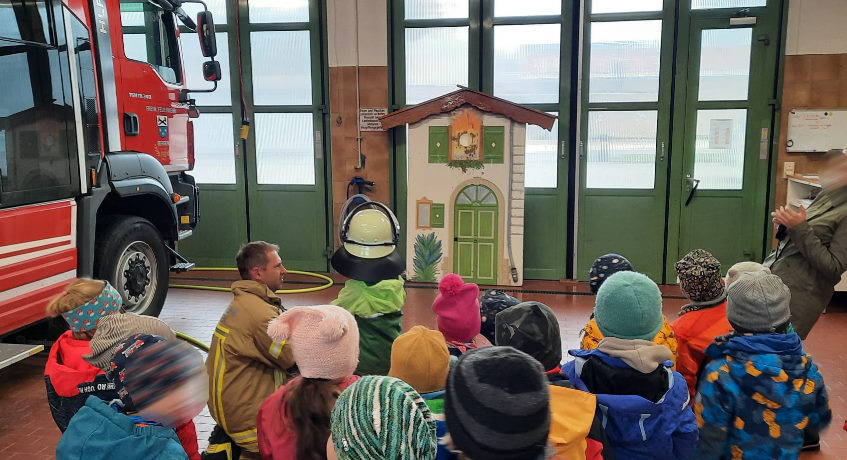 Eine Gruppe vom katholischen Kindergarten St.Joseph hat uns besucht, um sich unsere Ausrüstung mal genauer anzuschauen sowie unsere Fahrzeuge zu inspizieren und ganz viele Fragen zu stellen. Außerdem durften die Kinder bei einer kleinen Löschübung (siehe Bild) ihr Glück als echte Feuerwehrfrauen und -männer versuchen.