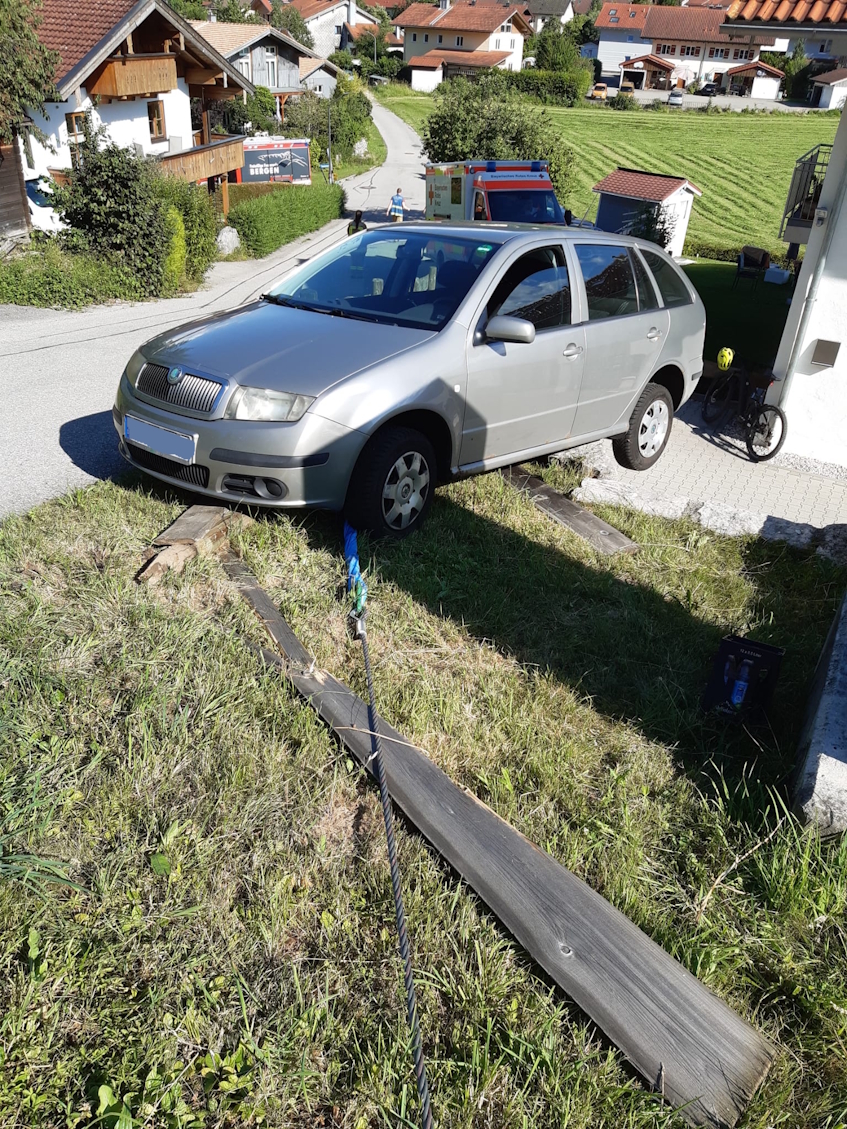 Beim Rückwärtsfahren auf abschüssiger Straße kam eine Pkw-Fahrerin gestern Nachmittag auf einer Steinmauer zum Stehen. Die Fahrerin blieb unverletzt, wir sicherten den Pkw mit unserem Mehrzweckzug und sperrten die Straße. 🚒