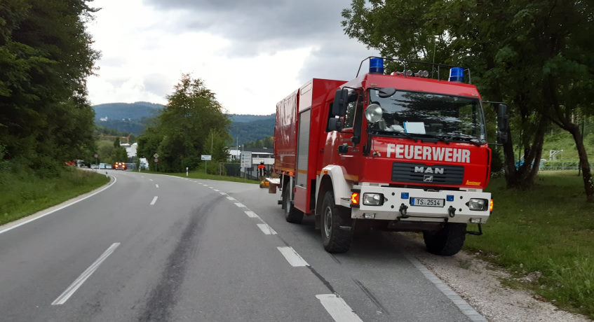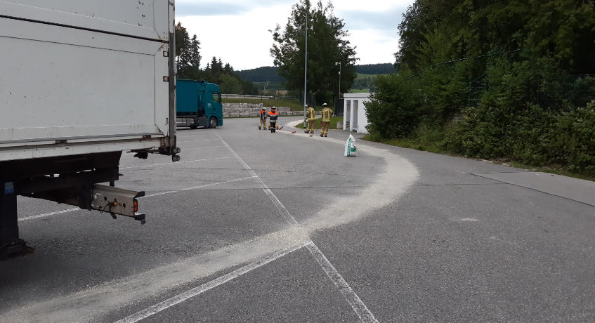 06.07.2021 Die Feuerwehr Bergen wurde am heutigen Dienstag Abend zu einer ca. 2 km langen Ölspur auf der Kreisstraße TS3 zwischen Bernhaupten und Bad Adelholzen alarmiert. Ein LKW hatte aufgrund eines technischen Defekts Motoröl verloren. Die Feuerwehr Bergen streute die Ölspur mit Bindemittel ab und reinigte die Straße.