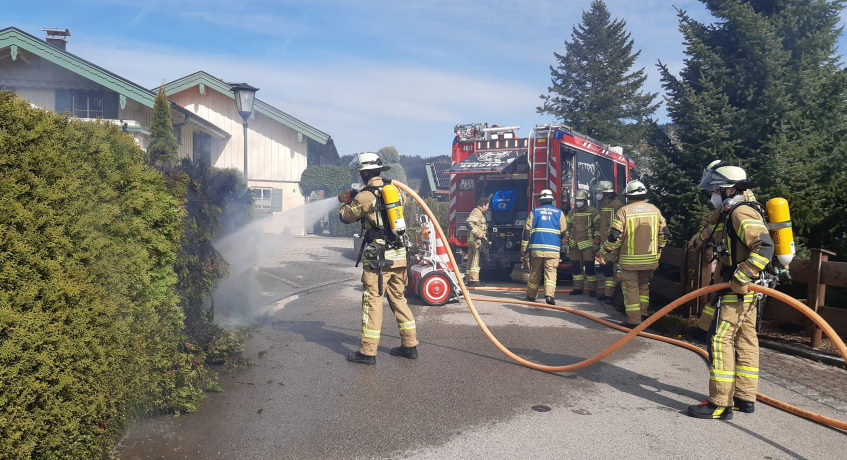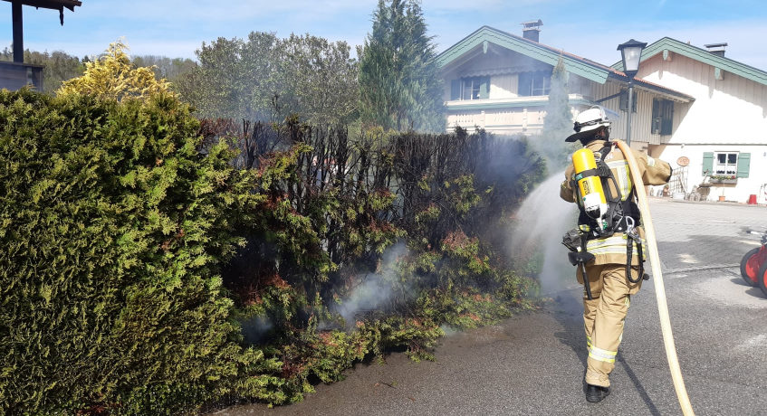 08.05.2021 Zu einem Heckenbrand wurde die Feuerwehr Bergen am heutigen Samstag Nachmittag in den Heckenweg alarmiert. Durch das schnelle und umsichtige Handeln der Nachbarn konnten sie mit Gartenschläuchen die Brandausbreitung bis zum Eintreffen der Feuerwehr unter Kontrolle halten. Die Feuerwehr Bergen löschte anschließend den Brand komplett ab und kontrollierte die Hecke auf Glutnester. Die ebenfalls alarmierte Polizei nahm den Vorfall auf.