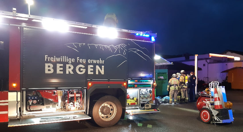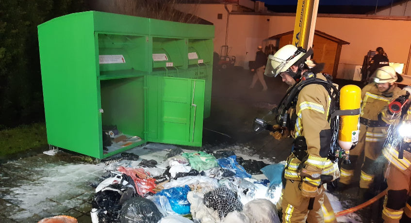 Zu einer Rauchentwicklung aus einem Altkleider-Container wurde die Feuerwehr Bergen am heutigen Spätnachmittag in den Heckenweg alarmiert.