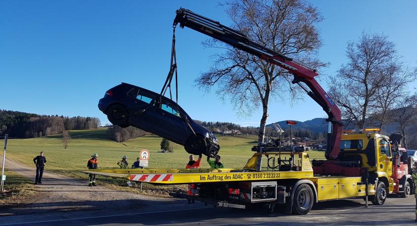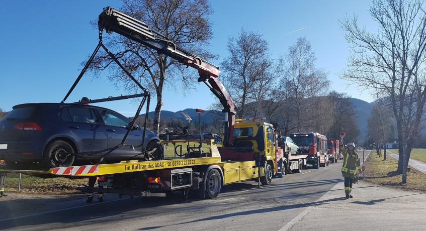 17.01.2020 Beim Abbiegen auf die Kreisstraße übersah ein PKW-Fahrer ein in Richtung Bergen fahrendes Auto, so dass es zum Zusammenstoß kam. Dabei landete ein PKW in einem anliegenden Wassergraben. Die insgesamt 3 Insassen in den beiden PKW wurden leicht verletzt. Die Feuerwehr Bergen betreute die Verletzten bis zum Eintreffen des Rettungsdienstes, regelte den Verkehr und band ausgelaufene Betriebsstoffe.