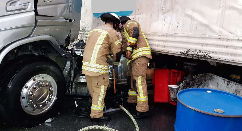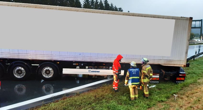 Die Feuerwehr Bergen wurde am heutigen frühen Samstag Morgen zusammen mit der Freiwillige Feuerwehr Siegsdorf zu einem LKW-Unfall auf die Autobahn A8 zwischen den Anschlussstellen Bergen und Siegsdorf-West alarmiert. Ein LKW-Fahrer verlor die Kontrolle über sein Fahrzeug, schleuderte in die Mittelleitplanke und kam quer über der Fahrbahn zum Stehen. Dabei riss der Dieseltank der Zugmaschine auf. Die Feuerwehr Bergen streute die ausgelaufenen Betriebsstoffe ab, pumpte den Dieseltank um und reinigte die Straße.