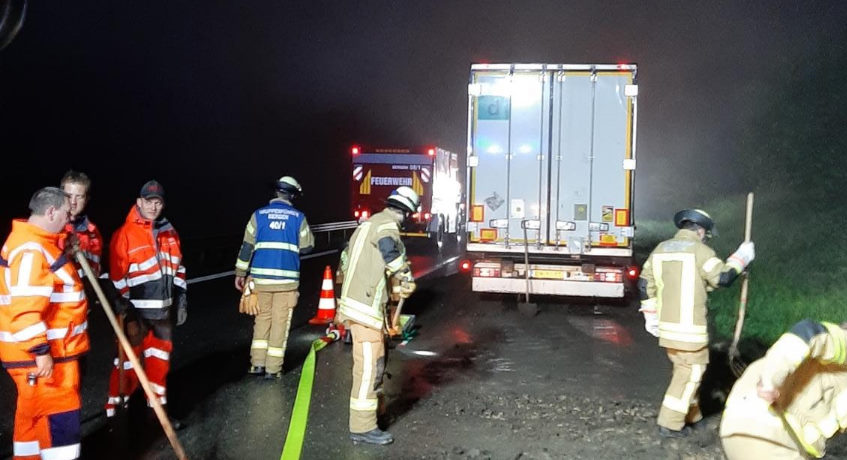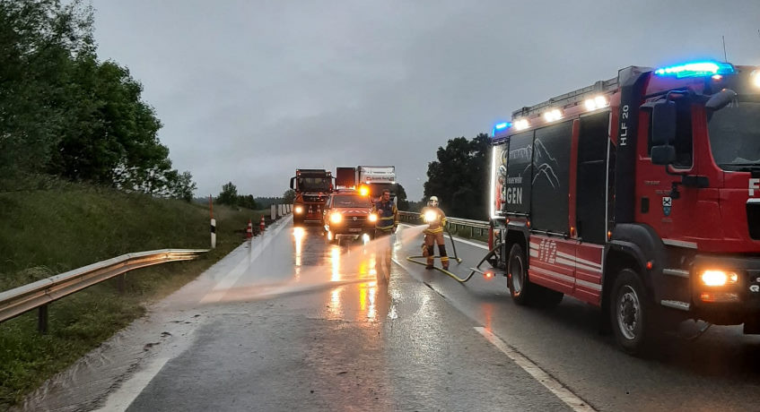 In der Nacht von Dienstag auf Mittwoch wurden wir auf die Autobahn alarmiert, um bei einer LKW-Bergung die Polizei und den Abschleppdienst zu unterstützen und die Fahrbahn sauber zu machen. Mit ausgerückt ist die Feuerwehr Siegsdorf mit ihrem Verkehrssicherungsanhänger.
