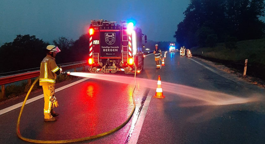 Mit dem Start in die neue Woche endet eine sehr ereignisreiche für die Freiwillige Feuerwehr Bergen. Neben unseren Aktivitäten als Verein rund um unser eigenes Feuerwehrfest und das der Freiwilligen Feuerwehr Siegsdorf, ereigneten sich in den vergangenen Tagen auch einige Einsätze.
