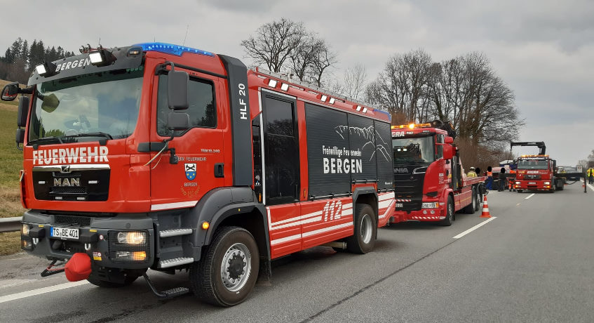 Die Feuerwehr Bergen wurde am heutigen Sonntag Nachmittag zu einem Auffahrunfall auf die Autobahn A8 in Fahrtrichtung München alarmiert.