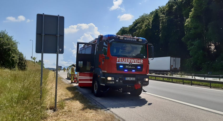 Die Feuerwehr Bergen wurde am heutigen Freitag Vormittag zu einem vermeintlichen PKW-Brand auf die Autobahn A8 in Fahrtrichtung München alarmiert.