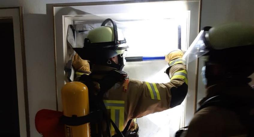Dazu stand uns ein Abrissgebäude als Übungsobjekt zur Verfügung, das die idealen Voraussetzungen bot, um einsatznahe Szenarien wie einen Zimmerbrand oder einen kompletten Wohnungsbrand durch entsprechende Verrauchung des Gebäudes zu simulieren.