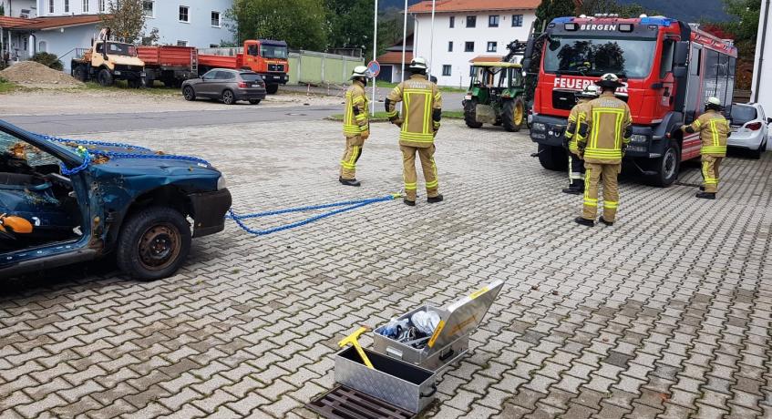 Am Samstag, 17.10.2020, trafen sich 8 Kameraden der Freiwilligen Feuerwehr Bergen, um sich theoretisch und praktisch rund um das Thema „Kettenrettung“ weiterzubilden.