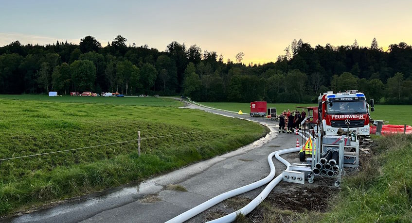 Unsere Aufgabe war, zusammen mit den Kameraden aus Rottau und Hammer, Löschwasser aus der Traun zu entnehmen und bis zur nächsten Zwischenstation zu befördern. Über einen Zeitraum von 15 Stunden wurde eine durchschnittliche Minutenförderleistung von knapp 8.000 Litern erreicht. In der gesamten Übungszeit wurden rund 7,6 Millionen Liter Wasser gefördert. (Quelle: kfv-traunstein.de).