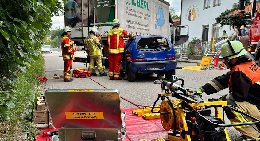 Kurz vor der verdienten Sommerpause übten die Wehren aus Bergen und Staudach-Egerndach den Einsatz bei einer umfangreichen Technischen Hilfeleistung.