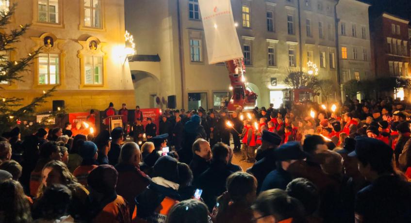 Wie jedes Jahr wird das Licht in Bethlehem entzündet und von dort nach Österreich geflogen. Die oberösterreichische Jugendfeuerwehr überbringt dann schließlich das Friedenslicht an die Jugendfeuerwehren vom Landkreis Traunstein.