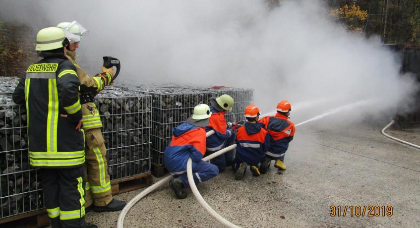 Unser Feuerwehrkamerad Andreas Kirchberger, der dort bei der Bundeswehr-Feuerwehr arbeitet, gab uns einen Einblick in die Aufgabenbereiche der WTD und stellte uns die Feuerwache und deren Fuhrpark vor. Die Fahrzeugbesichtigung wurde jedoch jäh von einem Feueralarm unterbrochen, und die jugendlichen Feuerwehrmänner und -frauen mussten zu einem „Einsatz“ ausrücken. Die beiden Jugendgruppen bauten einen Löschangriff auf und löschten den in Vollbrand stehenden Container professionell ab.