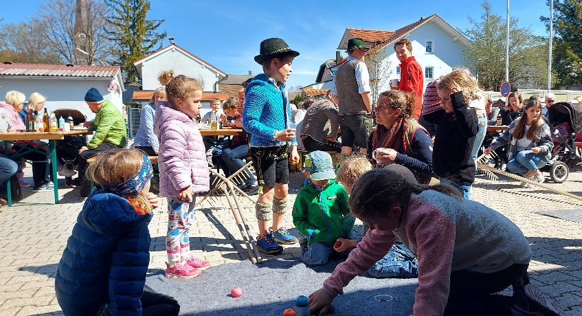 Bei schönem Wetter kamen am Ostermontag Jung und Alt am Feuerwehrhaus zusammen, um der Tradition nachzugehen, die vom Trachtenverein und der Feuerwehr Bergen organisiert wurde.