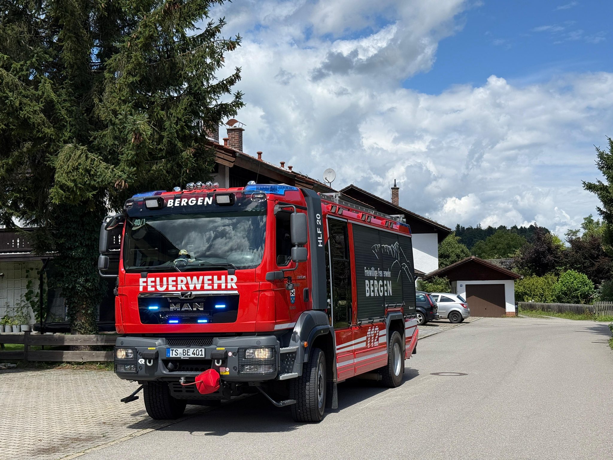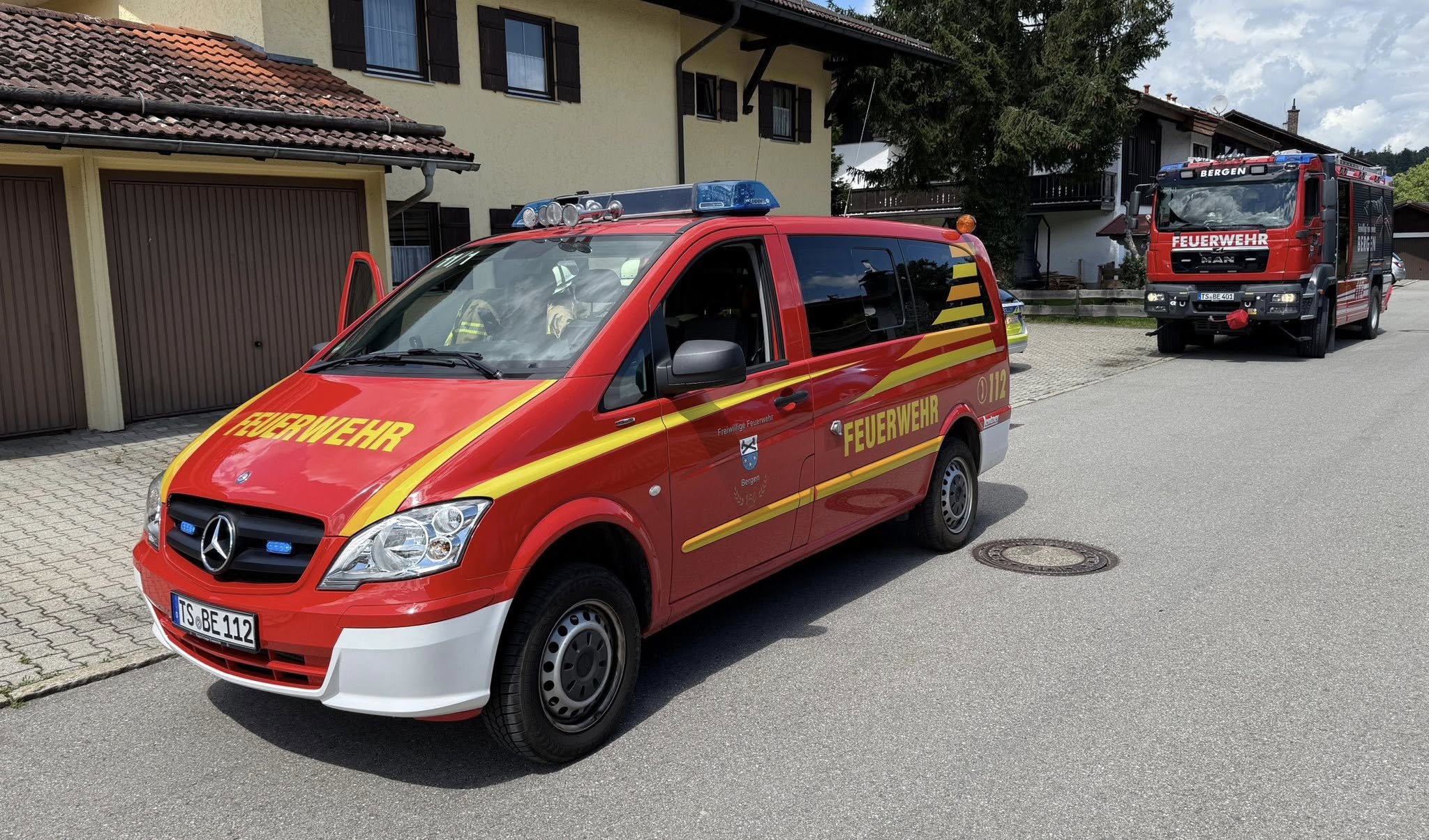 Zwei Einsätze hatte die Freiwillige Feuerwehr Bergen am 31. Juli: Zuerst schickte uns die Integrierte Leitstelle zusammen mit Rettungsdienst und Polizei gegen 12 Uhr mittags zu einer Wohnungsöffnung. Wir öffneten die Tür, fanden allerdings keine Person vor (Bilder sieben und acht).
