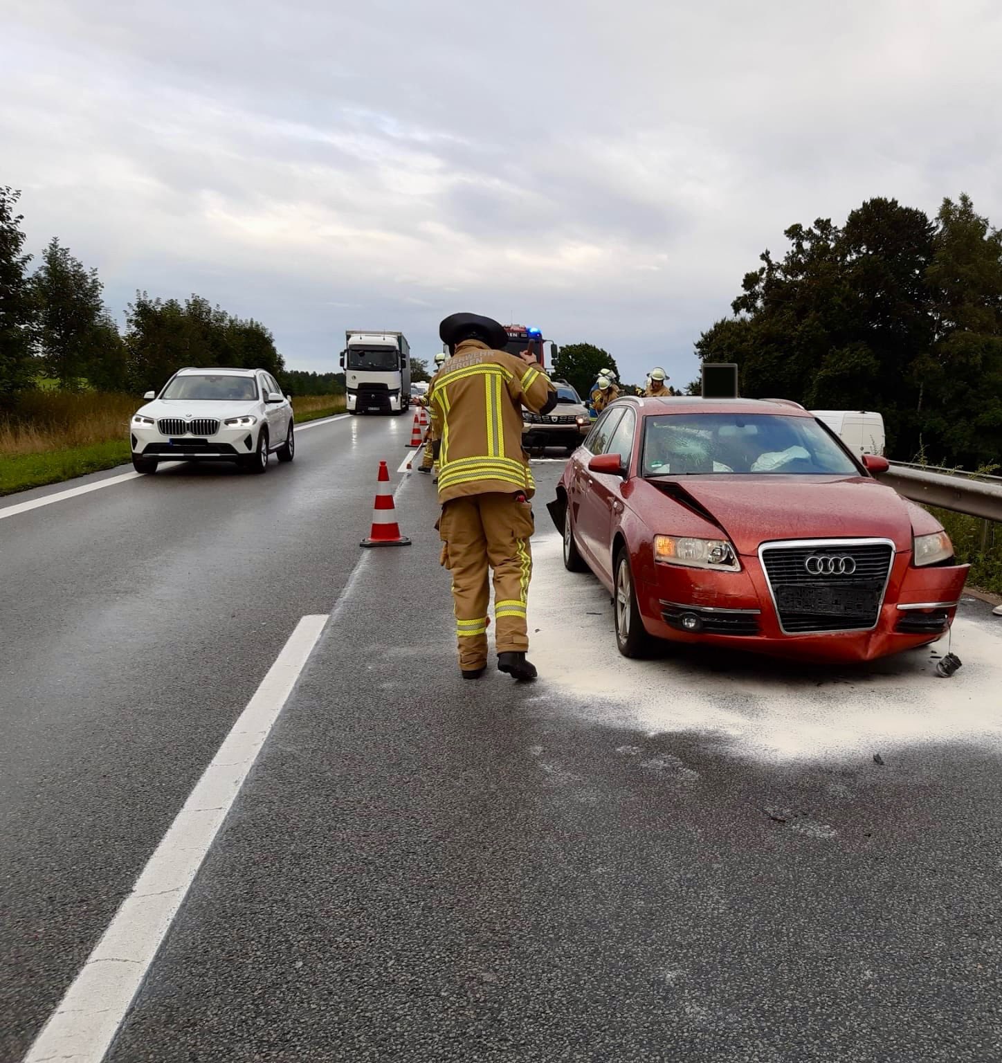 Wir und die Kameraden aus Holzhausen banden auslaufende Betriebsstoffe und stellten den Brandschutz sicher. Die Freiwillige Feuerwehr Siegsdorf war mit ihrem Verkehrssicherungsanhänger da und sicherte die Einsatzstelle. Die Grabenstätter Kameraden waren ebenfalls alarmiert, konnten aber gleich wieder abrücken, nachdem die Kräfte ausreichend waren.