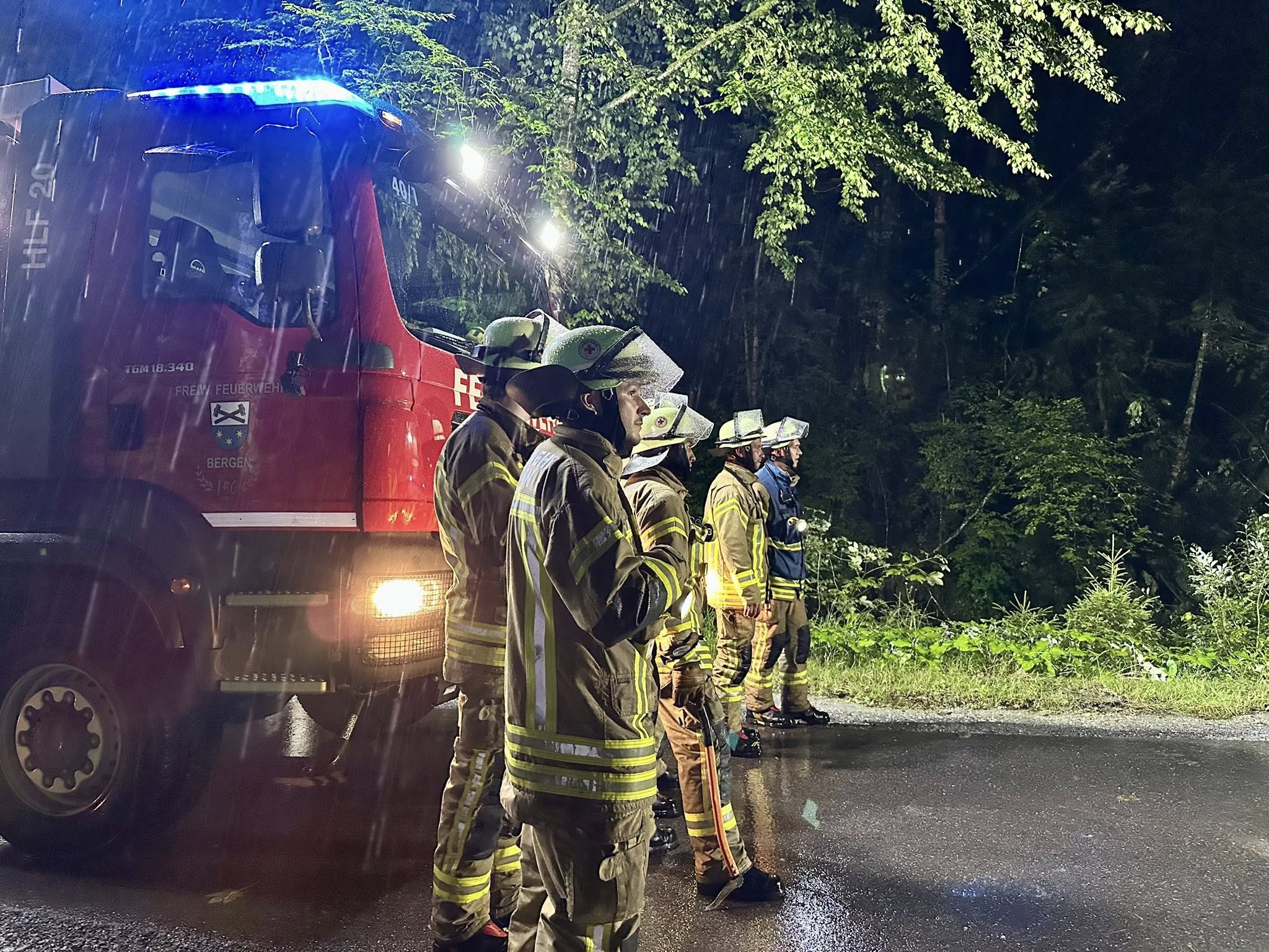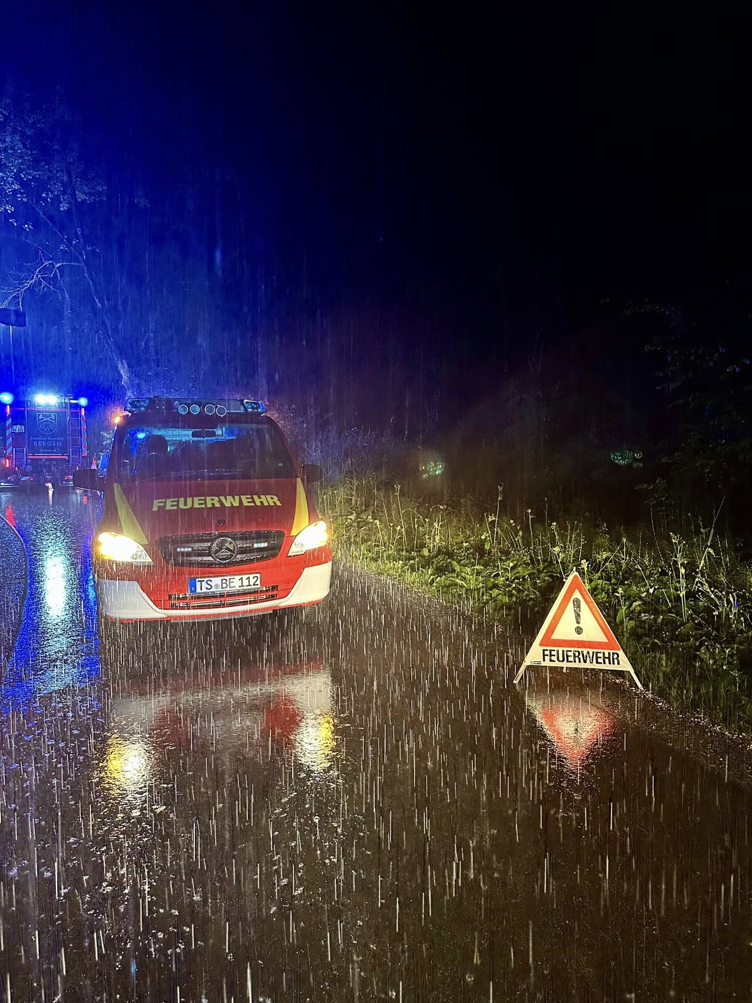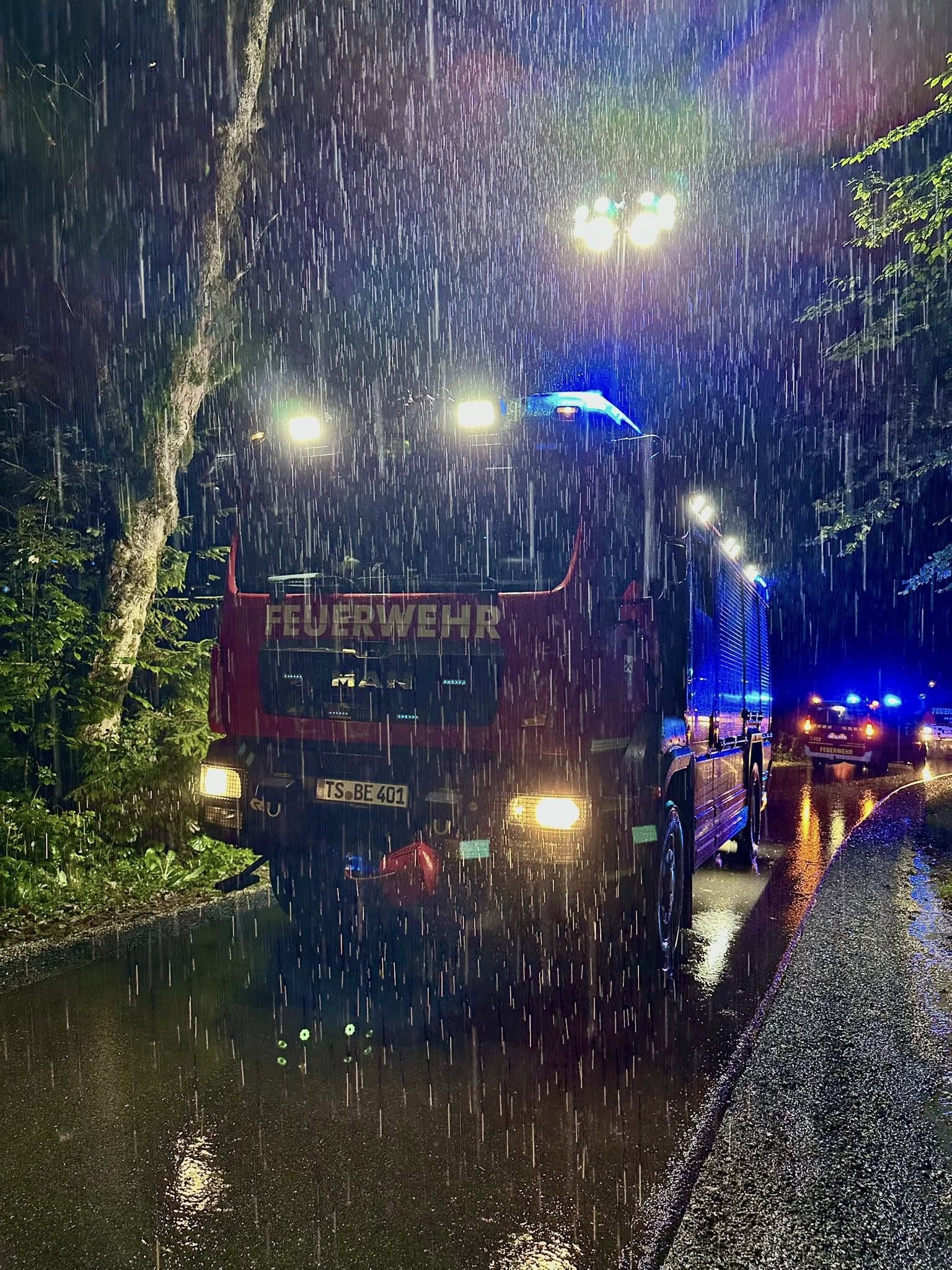 Bei unserem zweiten Einsatz am 21.8. war ein Baum auf die Verbindungsstraße Richtung Kohlstatt gestürzt. Wir entfernten den Baum und reinigten die Straße. Außerdem musste eine Sicherheitsfällung eines weiteren, in Mitleidenschaft gezogenen Baums vorgenommen werden. Ein örtliches Forstunternehmen unterstützte mit einem Traktor mit Seilwinde.