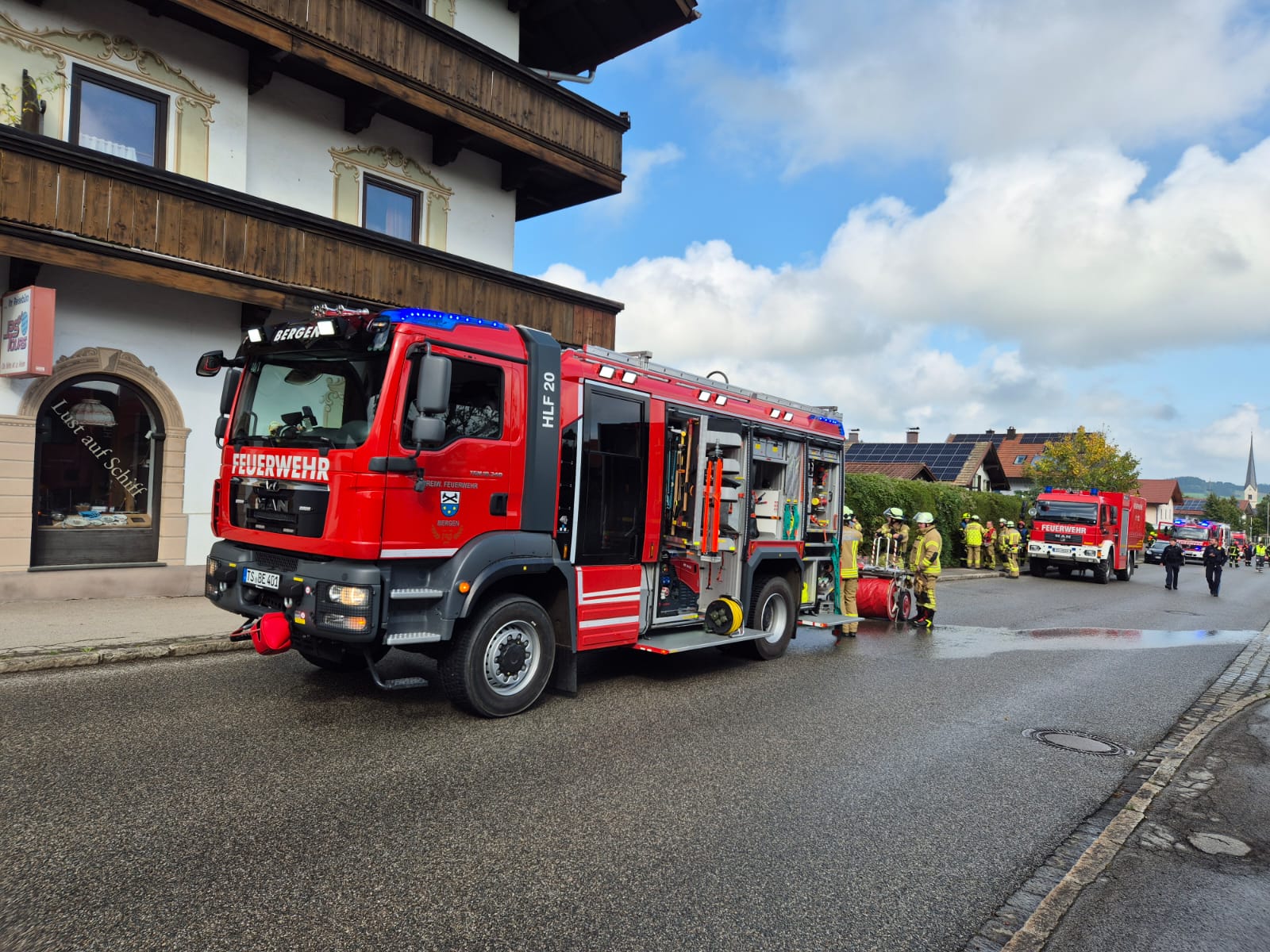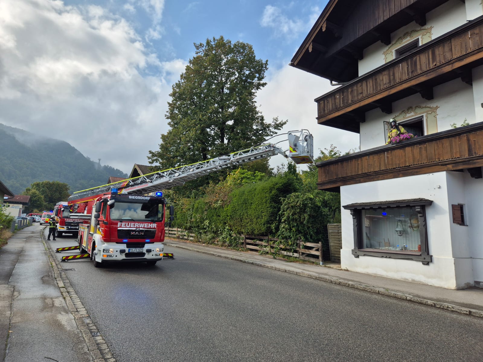 Zu einem B3 Zimmerbrand mit Person in Gefahr wurden wir und die Kameraden aus Holzhausen, Vachendorf und Siegsdorf am Sonntag 28.9. vormittag gegen 11:45 Uhr alarmiert 🚨.