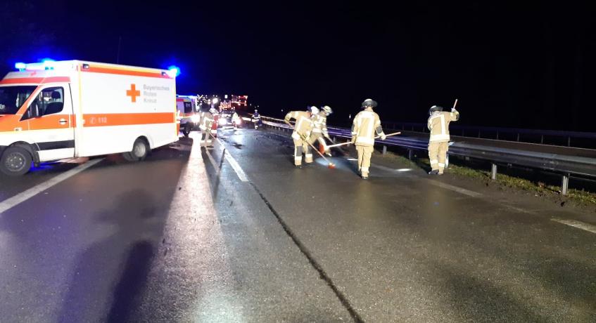 Am Dienstag, 13.10.2020, wurde die Feuerwehr Bergen gegen 22 Uhr zu einem schweren Verkehrsunfall auf die Autobahn A8 zwischen den Anschlussstellen Bergen und Grabenstätt in Fahrtrichtung München alarmiert.