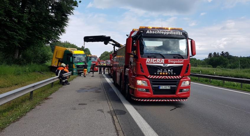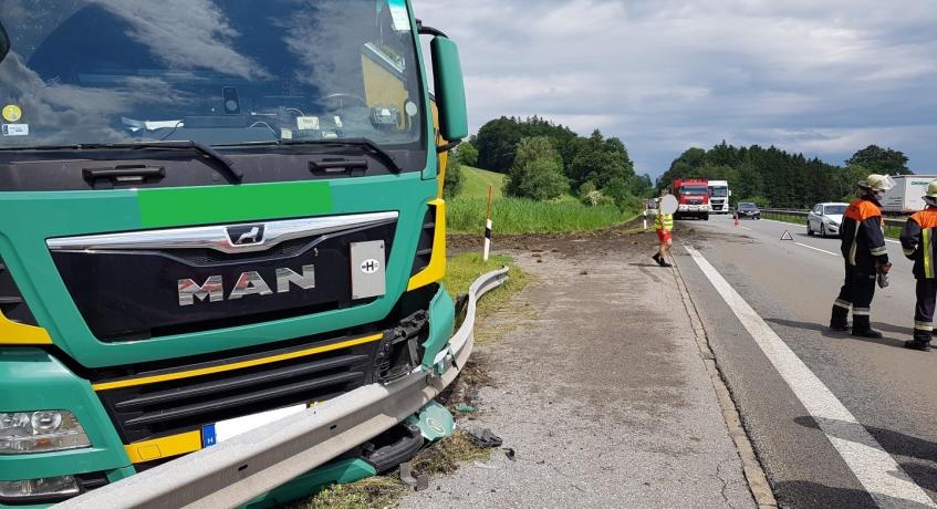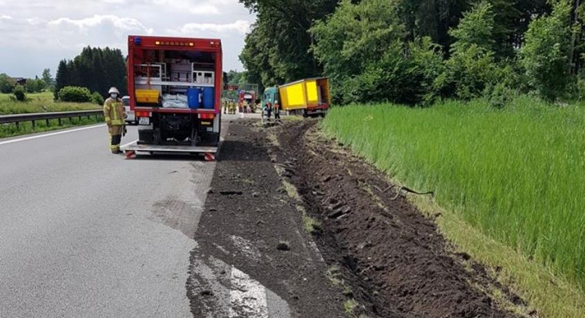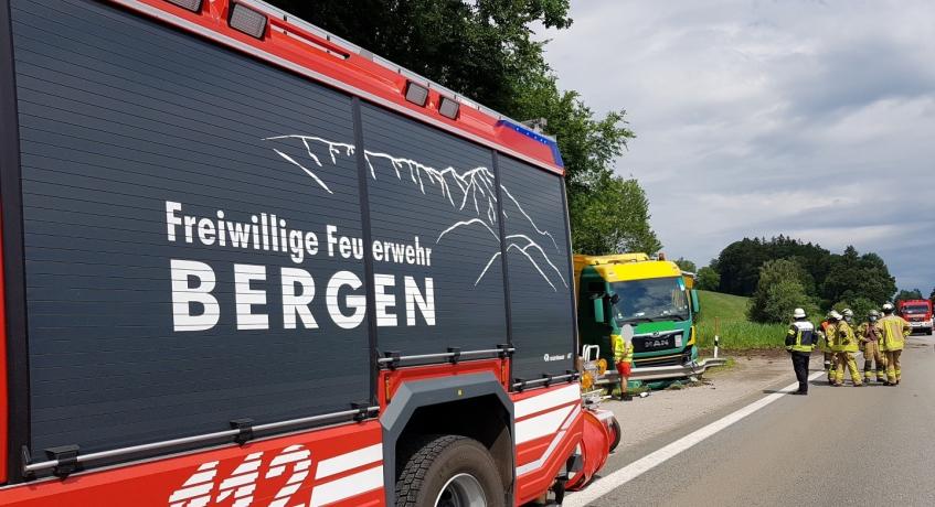 Ein ungarischer LKW-Fahrer kam mit seinem vollbeladenen LKW nach rechts von der Straße ab und blieb in der Böschung hinter einer Leitplanke stecken. Zur Bergung des LKW musste die Leitplanke auf mehrere Meter von der Feuerwehr weggeschnitten werden. Außerdem reinigte die Feuerwehr die Straße sowie den geborgenen LKW, damit dieser abtransportiert werden konnte. Während der Bergung des LKW war die rechte Fahrspur für ca. 2 Stunden gesperrt, wodurch sich ein kilometerlanger Rückstau bildete. Neben der Feuerwehr Bergen waren noch die Feuerwehren Grabenstätt und Übersee alarmiert, die jedoch nach kurzer Zeit wieder in ihre Feuerwachen zurückkehren konnten.