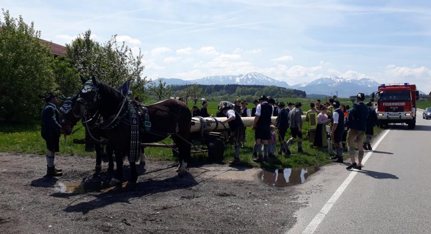 Am heutigen 1. Mai fand das Diebesgut nach einer mehrwöchigen Bewachung seinen Weg zurück in seinen Heimatort nach Erlstätt. Die Feuerwehr Bergen übernahm dabei die Absicherung des Maibaumtransports von Bergen nach Erlstätt und wurde dabei von der Freiwillige Feuerwehr Erlstätt tatkräftig unterstützt, die sich um die notwendigen Straßensperrungen im Ort kümmerten. Wir wünschen den Erlstättern viel Glück mit ihrem neuen Schmuckstück im Herzen Erlstätts.