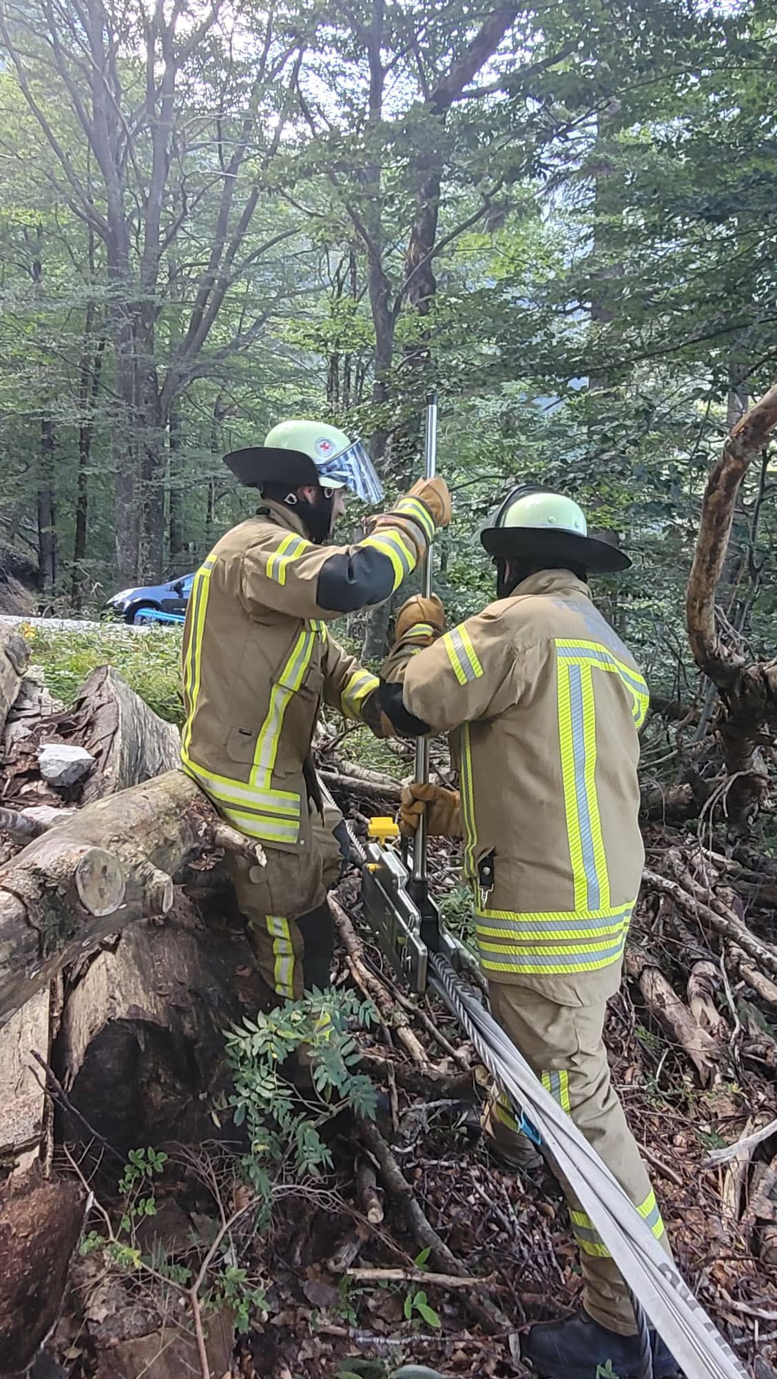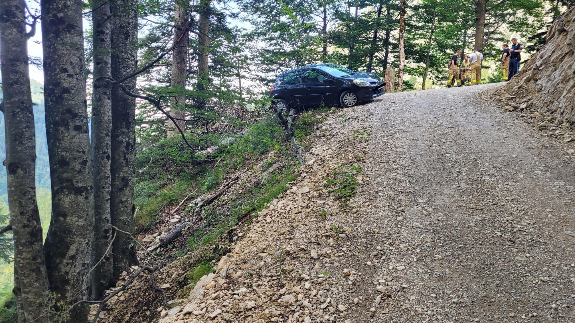 Durch die Bergwacht wurden weitere Feuerwehreinsatzkräfte zur Einsatzstelle gebracht – eine Anfahrt mit größeren Fahrzeugen der Feuerwehr war nicht möglich, da es sich beim einzigen Zugang zum Unfallort um einen schmalen Forstweg handelte. Die Kameraden sicherten das Fahrzeug vor einem weiteren Abstürzen, Bergwachtangehörige kümmerten sich um die geschockte