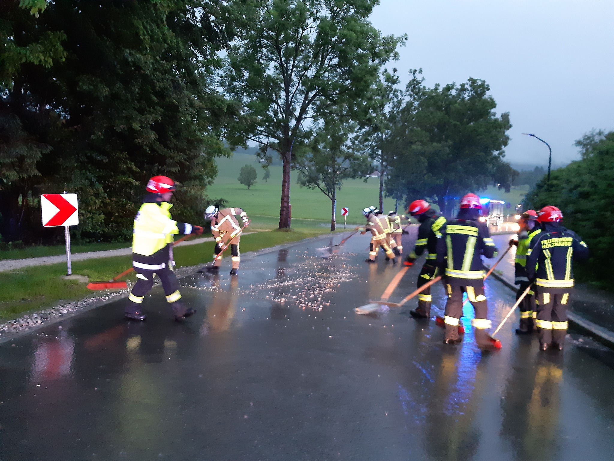 Die Feuerwehr Bergen wurde am Abend des 3. Juni zu einer Straßenreinigung auf die Kreisstraße TS6 am Ortseingang Bernhaupten alarmiert. Aufgrund der heftigen Regenfälle wurde eine größere Menge Geröll auf die Straße gespült. Gemeinsam mit der Feuerwehr Holzhausen wurde die Straße vom Geröll befreit und der Verkehr während der Reinigungsarbeiten umgeleitet.
