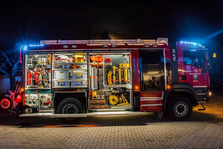 Hygieneboard, Kombinationsschaumrohr M4/S4, Schaumaufsatz Hohlstrahlrohr, Schaumaufsatz Dachmonitor, Schnellangriffshaspel Strom und Druckluft, Schnellangriff Wasser 30m C-Schlauch in Buchten gelegt, Fett und Metallbrandlöscher, Pulver und CO2 Löscher, MicroCafs, B-Schlauch mit Schnellangriffsverteiler