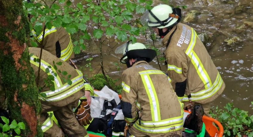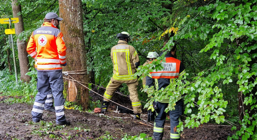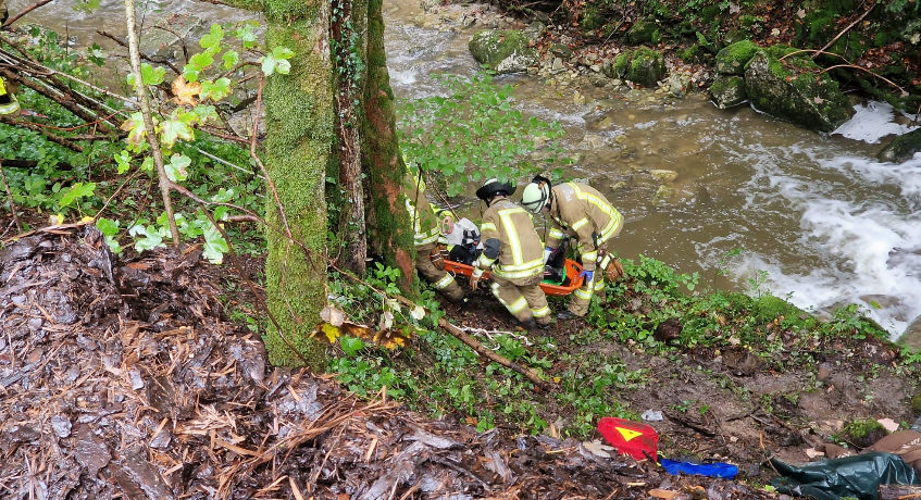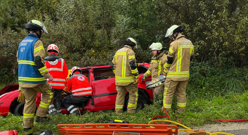 Geübt wurden verschiedene Einsatzszenarien wie ein Verkehrsunfall mit eingeklemmter Person, austretender Gefahrenstoff mit Personenrettung und ein Fahrradsturz in einem steilen Waldgebiet.
