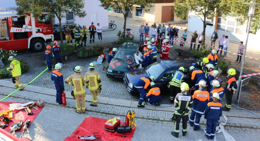 Am Nachmittag standen ein Mülltonnenbrand am Bauhof der Gemeinde sowie eine große Gemeinschaftsübung mit der Feuerwehr Ruhpolding und der Wasserwacht Ortsgruppe Bergen am Raiffaisenplatz auf dem Programm. Ein Verkehrsunfall mit zahlreichen verletzten und eingeklemmten Personen stellten die Jugendfeuerwehrler vor eine große Herausforderung, die mit Bravour gemeistert wurde. Wir bedanken uns bei der Feuerwehr Ruhpolding und der Wasserwacht Bergen für die hervorragende und vorbildliche Zusammenarbeit.