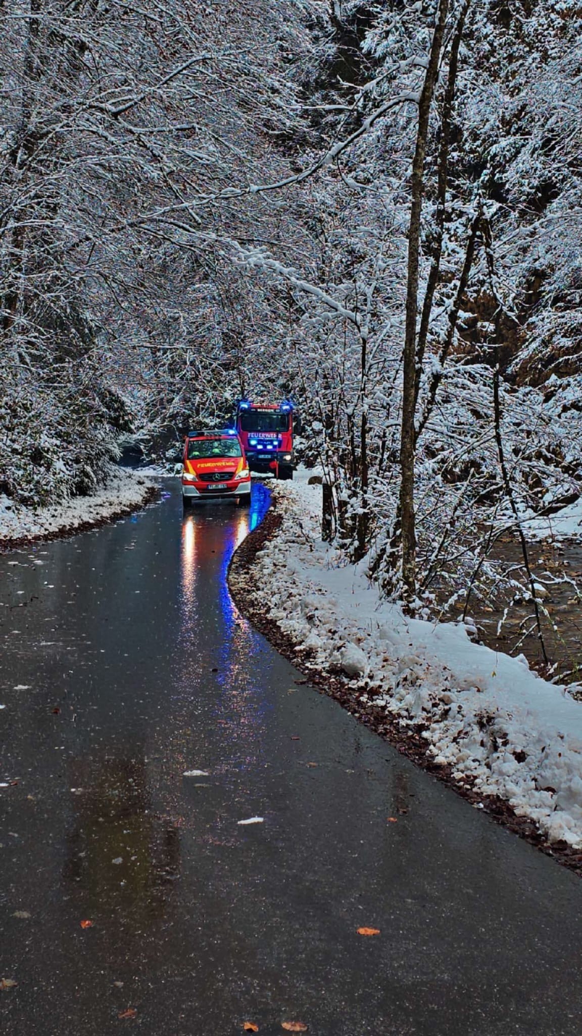 Wegen der Schneelast sind am Donnerstag 27. November sechs Bäume auf die Straße bei Kohlstatt gestürzt. Wir wurden alarmiert, um sie zu entfernen. ❄️